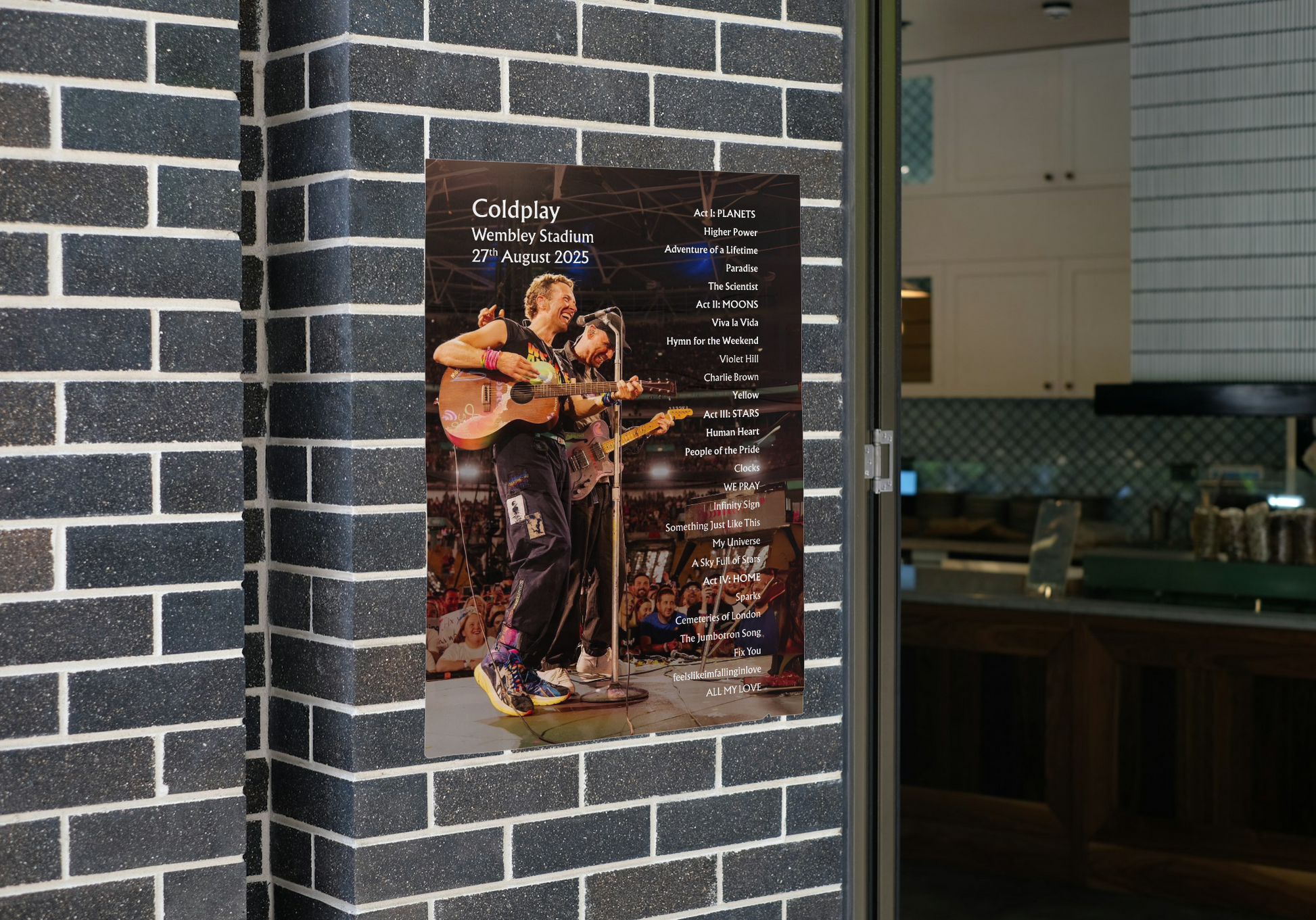Coldplay 2025 WEMBLEY 27th Aug NIGHT FOUR Setlist Poster - A1 to A5 frame Option