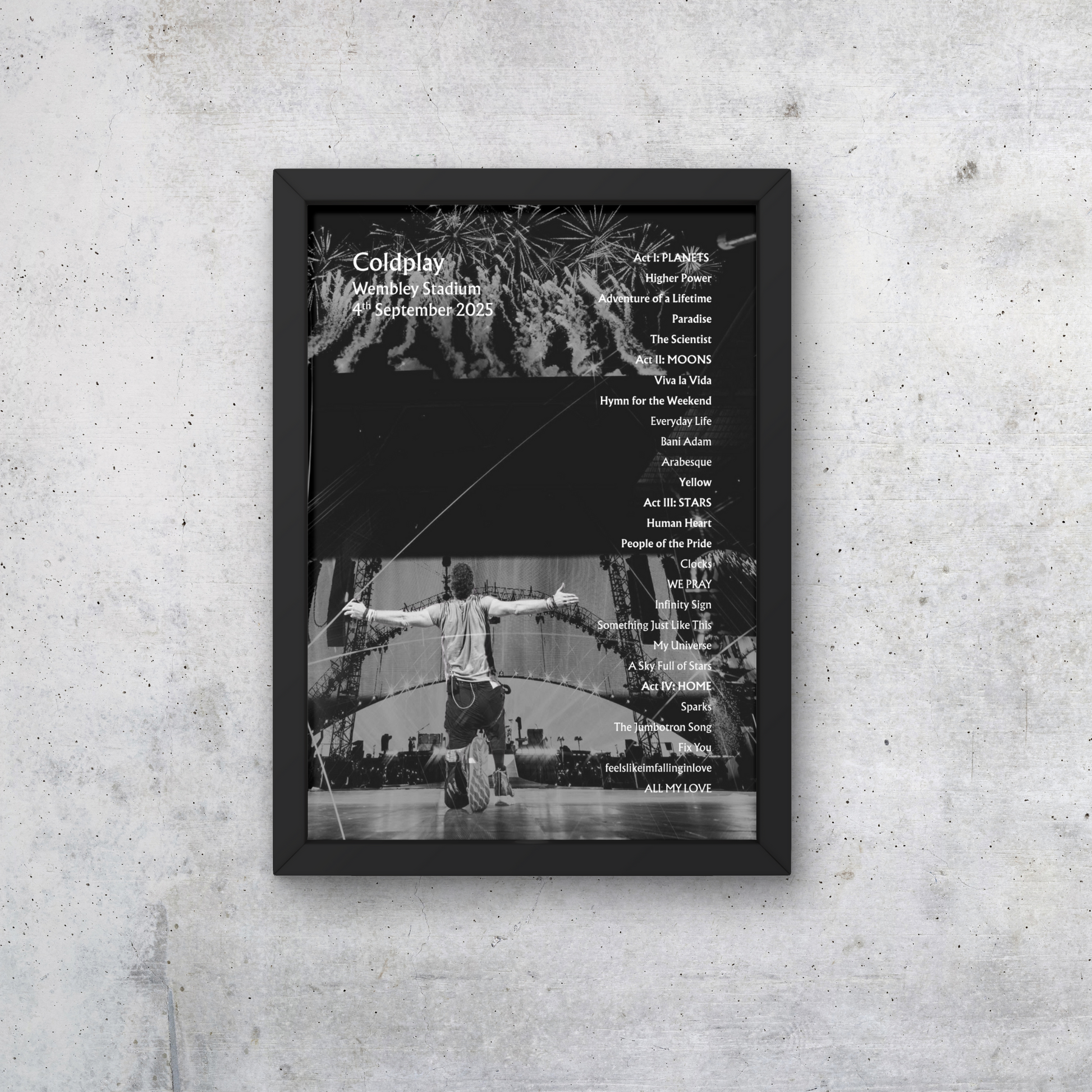 Coldplay Wembley 04/09/25 NIGHT EIGHT Setlist Poster - A1 to A5 w/frame Option