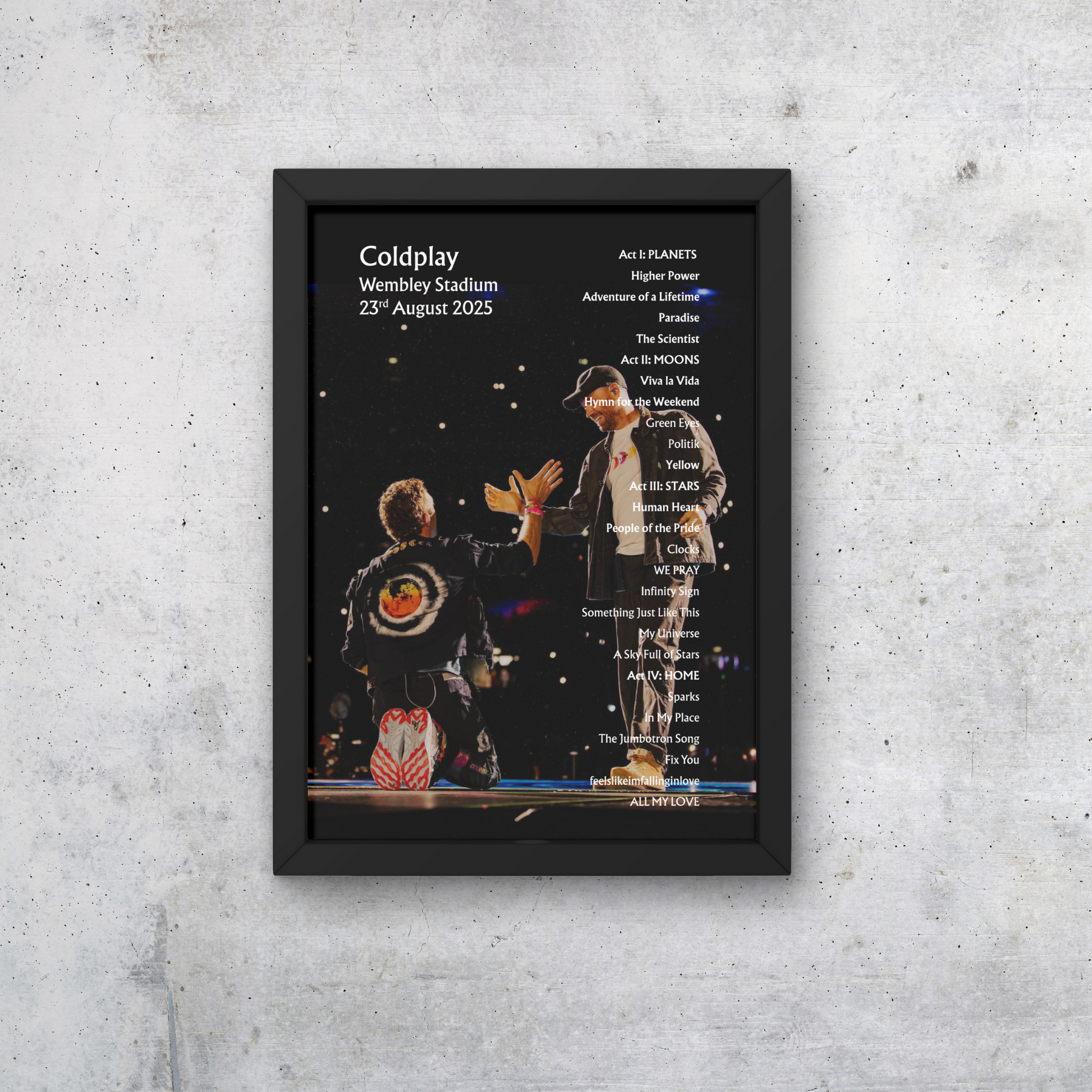 Coldplay Wembley 23/08/25 NIGHT TWO Setlist Poster - A1 to A5 w/frame Option