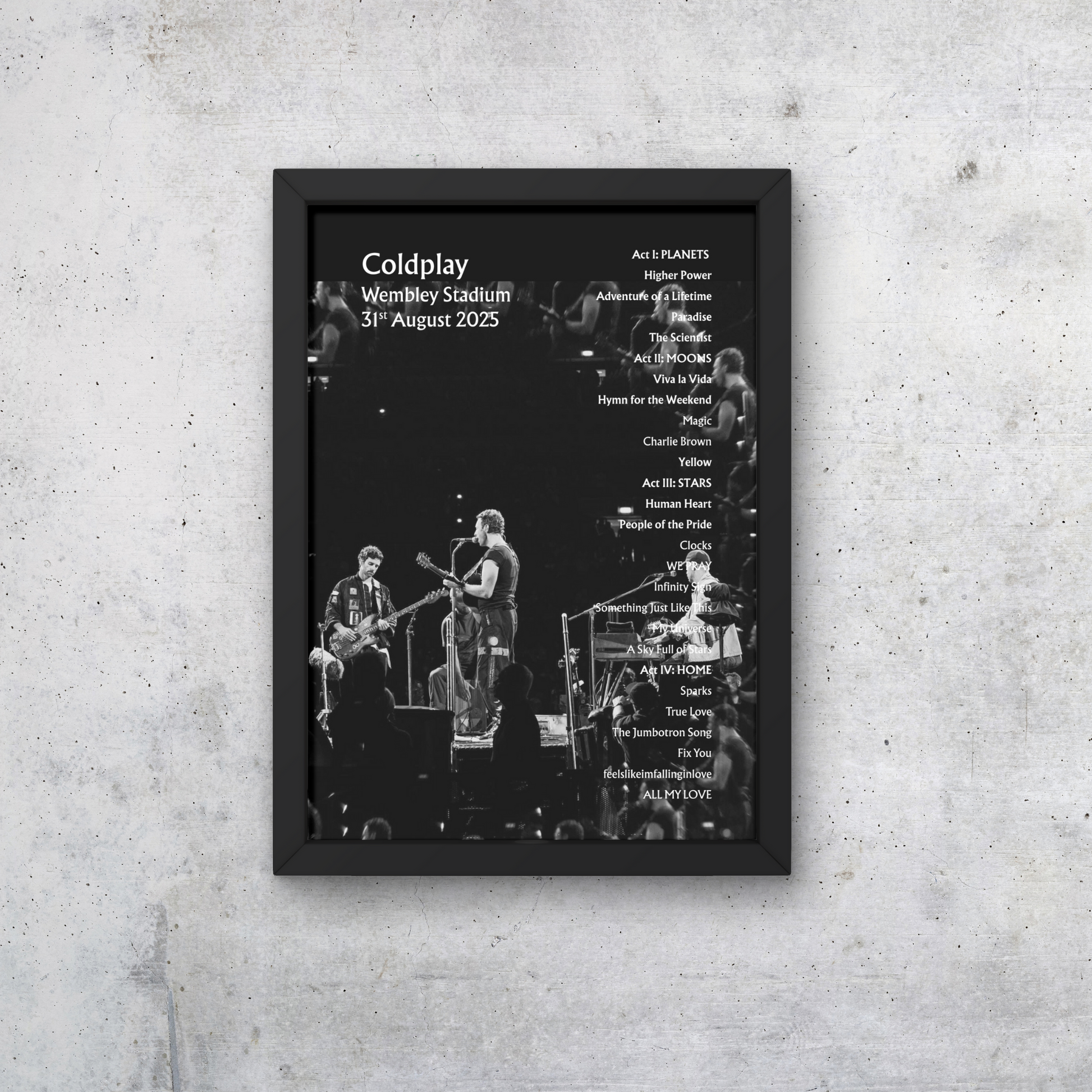 Coldplay Wembley 31/08/25 NIGHT SIX Setlist Poster - A1 to A5 w/frame Option