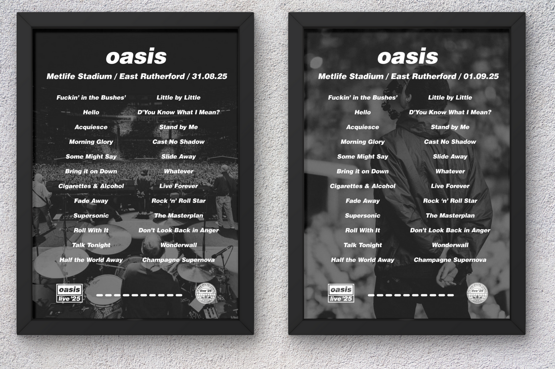 OASIS EAST RUTHERFORD 2025 SETLIST POSTER | BOTH DATES | A1 - A5 w/Frame Option