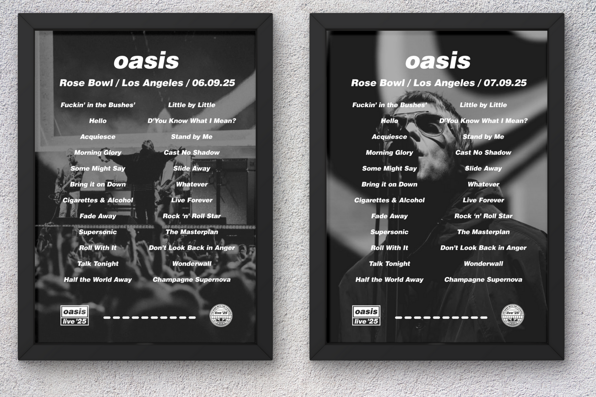 OASIS LOS ANGELES 2025 SETLIST POSTER | BOTH DATES | A1 - A5 w/Frame Option
