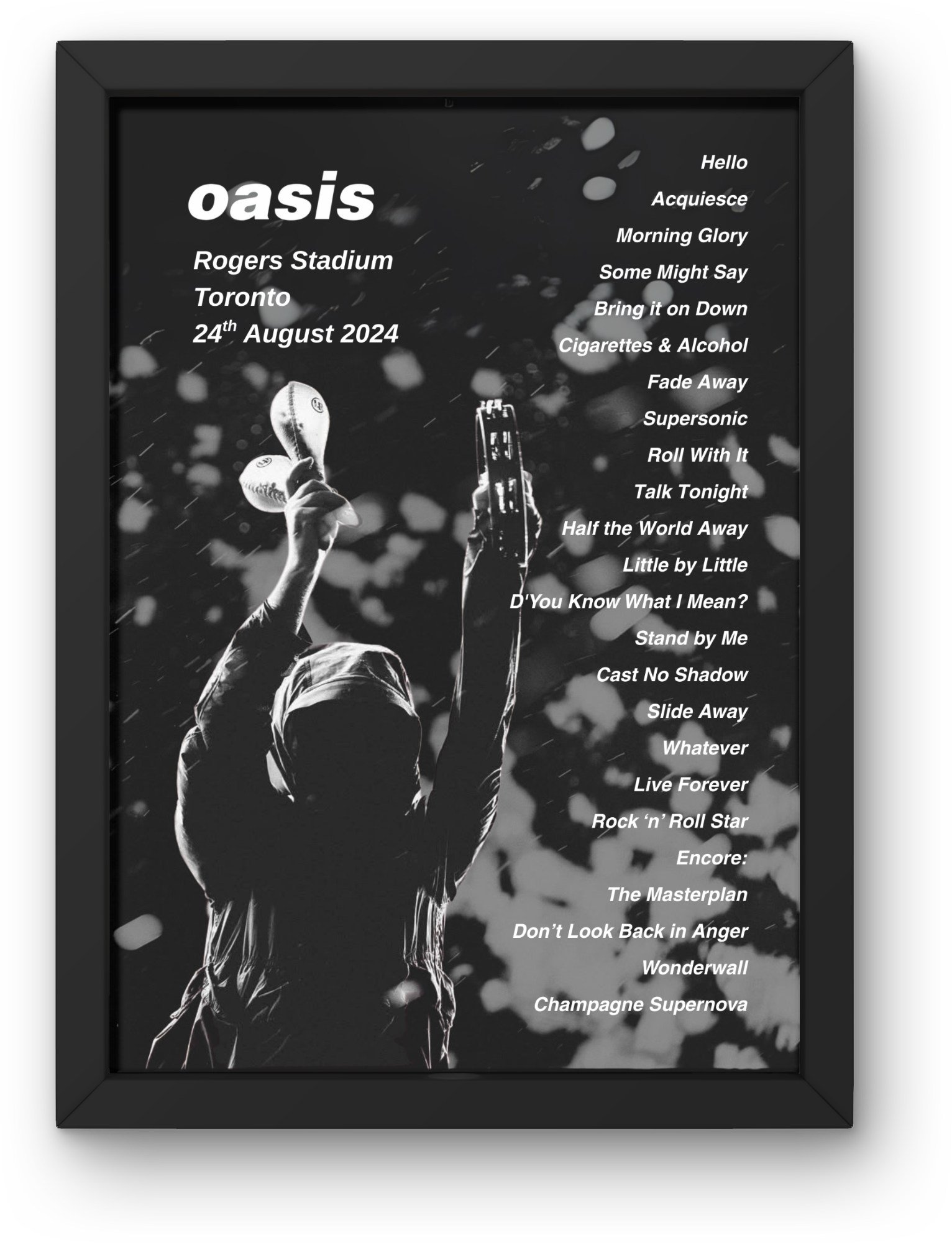 OASIS TORONTO LIVE 2025 SETLIST POSTER | BOTH DATES | A1 - A5 w/Frame Option